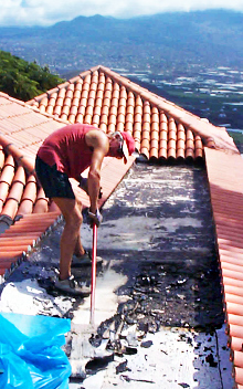 Dachsanierungen, entfernen des alten Aluminium-Bitu-