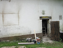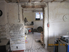 Umbau des alten Stalles zum Hauswirtschaftsraum/Lagerraum, für Waschmaschine mit Warmwasseranschluss und Anschlüsse für zukünftige Heizungsanlage, Fliesen und Bodenablauf, Revisionsstelle für Wandheizung.