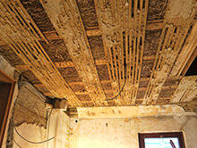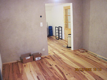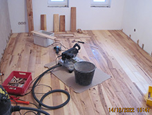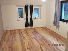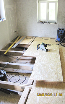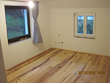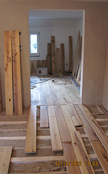 Verlegung von Dielenböden, verschraubt und geölt, Verstärkung der Unterkonstruktionen.