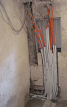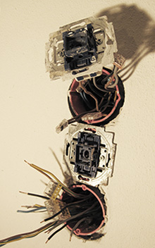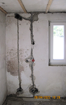 Verlegung neuer Stromleitungen und Kreise mit Abschirmkabel u. Dosen gegen Elektrosmog.