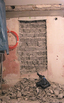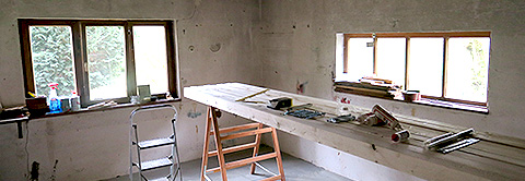 Wanddurchbrüche, z. B. für neue Fenster, Einbau und Gießen von Betonstürzen, Statik auffangen, Betonarbeiten, Einzug neuer Balken.