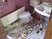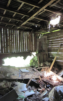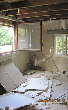 Rückbau des Dachgeschosses und der unteren Etagen, Entsorgung von Müll.