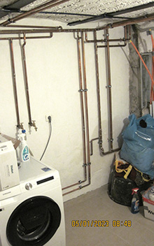 Wasserleitungen in Kupfer mit neuen Anschlüssen für Küche, Bad und Außenbereich.